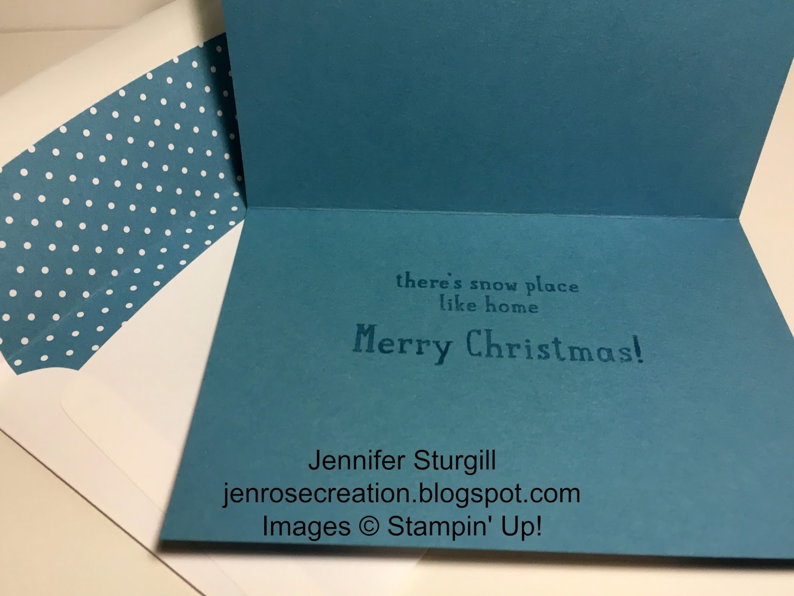 To finish off the card,  we stamped the inside in Marina Mist ink using 2 stamps from the Snow Friends stamp set.